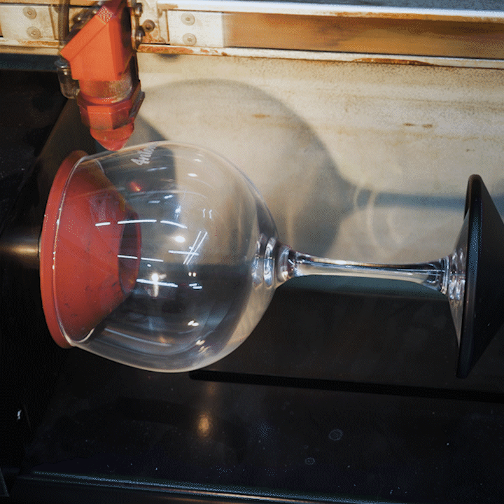 Todas las copas están grabadas con láser. Eso quiere decir que no imprimimos encima, por lo que no pueden ir a color o en escalas de grises. El láser va haciendo un tallado blanco sobre el vidrio con un nivel de detalle alto, pero no es adecuado para grabar caras de personas o logos con partes pequeñas.